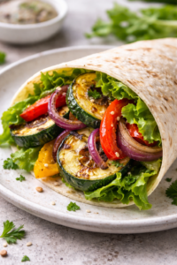 - Wrap mit Romanasalat und Grillgemüse.